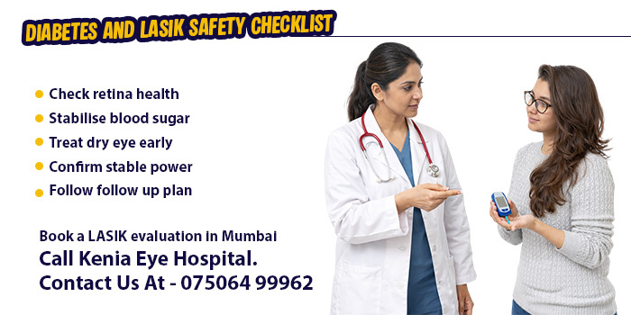 If you want lasik eye surgery in Mumbai with a diabetes safe screening approach, book your evaluation first. Once your retina and cornea are cleared, the team can guide you on the safest procedure and the right timeline.