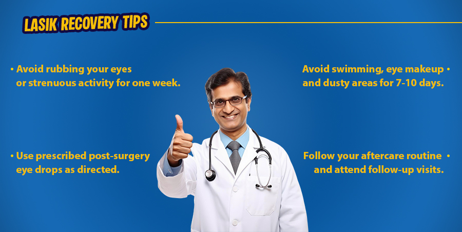 Most patients resume work within 1-2 days after LASIK recovery, though heavy activity should be avoided for a week.